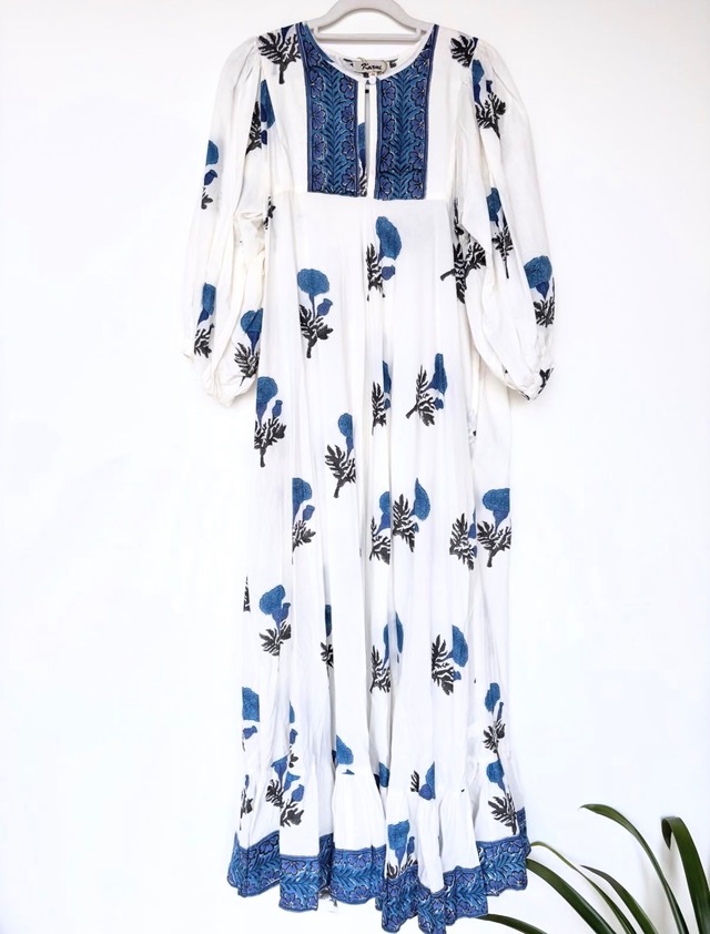 インド ブロックプリントのコットンマキシドレス