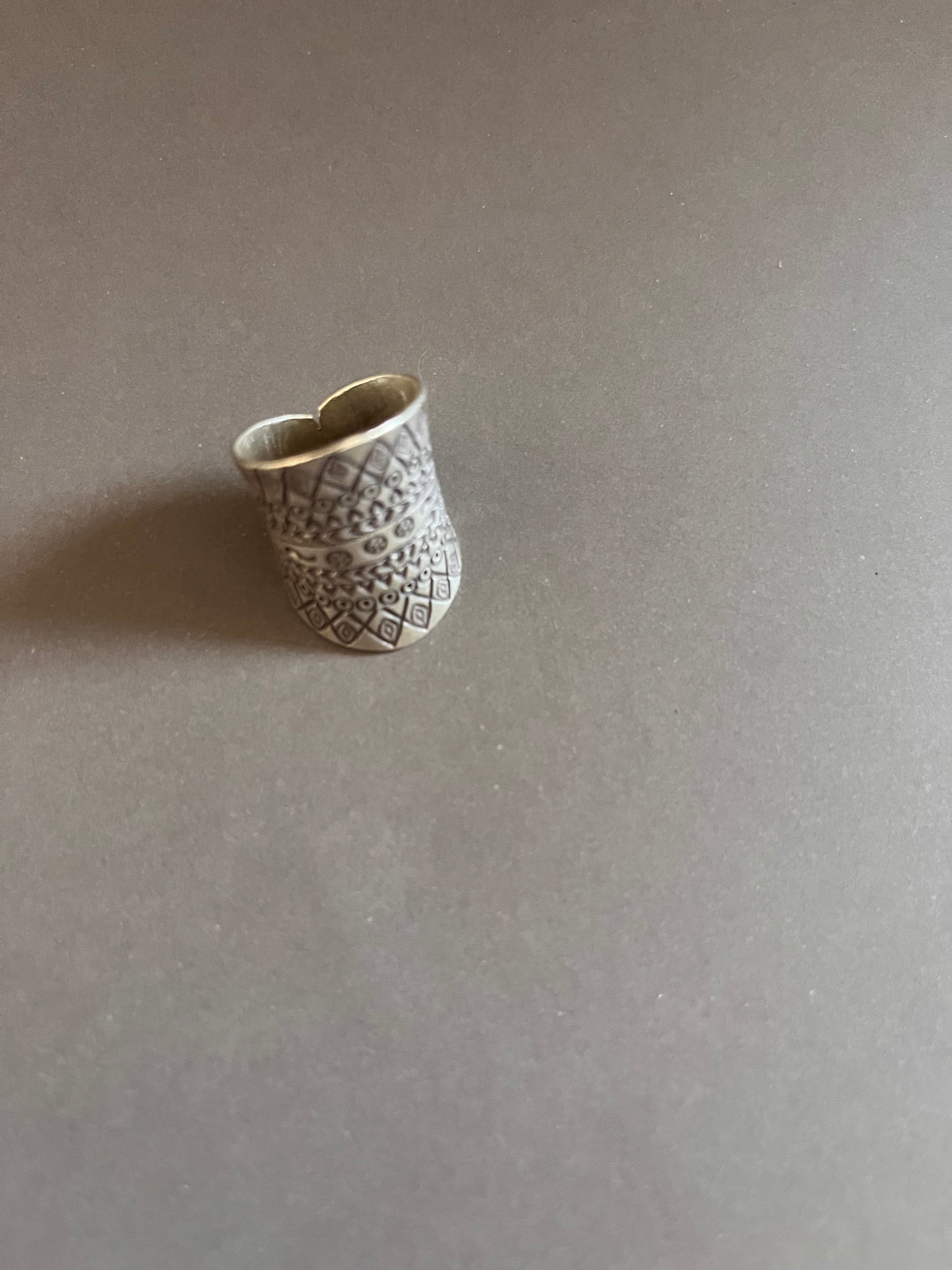 タイ北部・山岳民族カレン族によって作られた、伝統文様が全面に刻まれたシルバーリング。