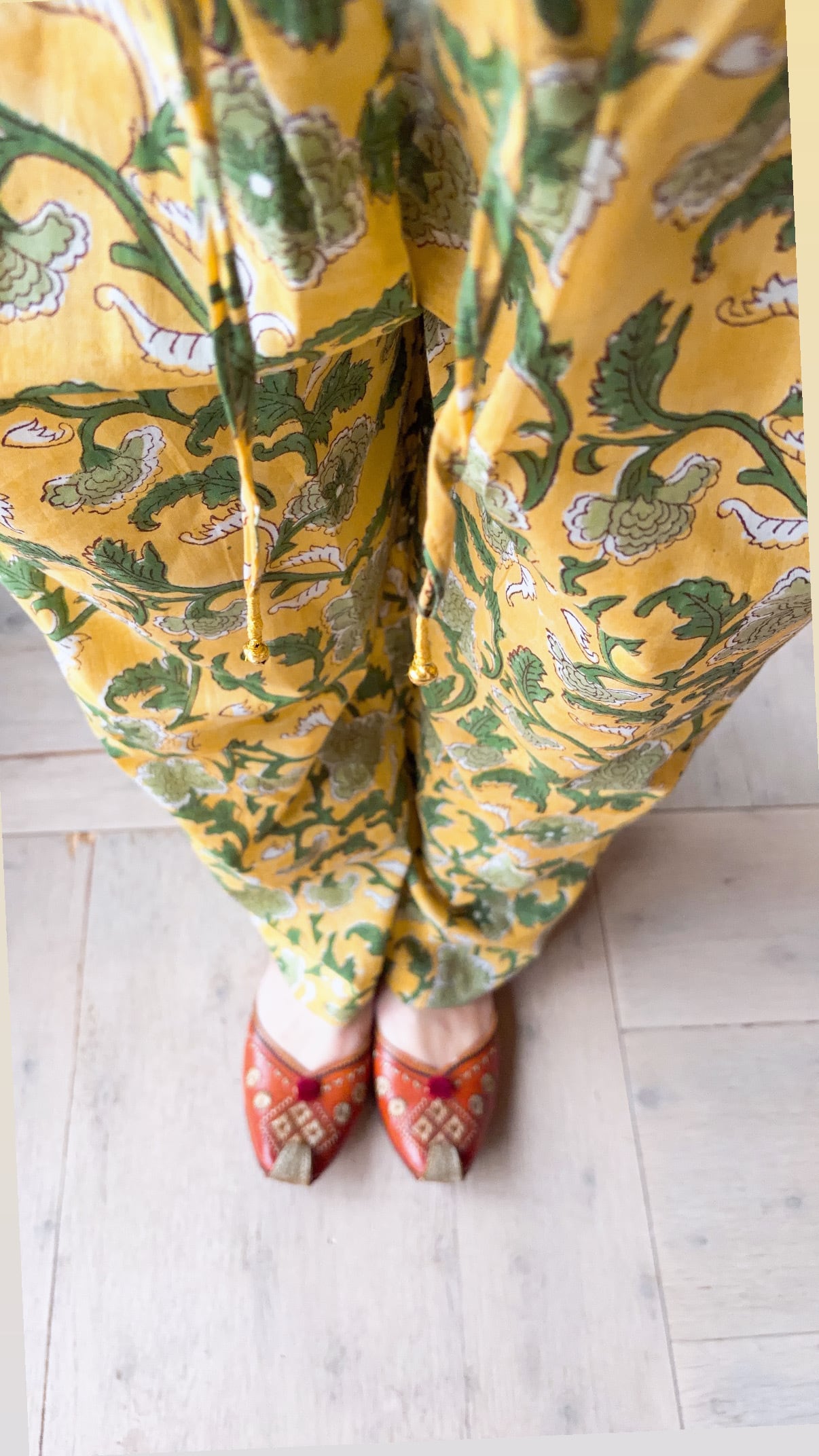 オーガニックインドコットン ブロックプリント ゆるりパンツ イエロー