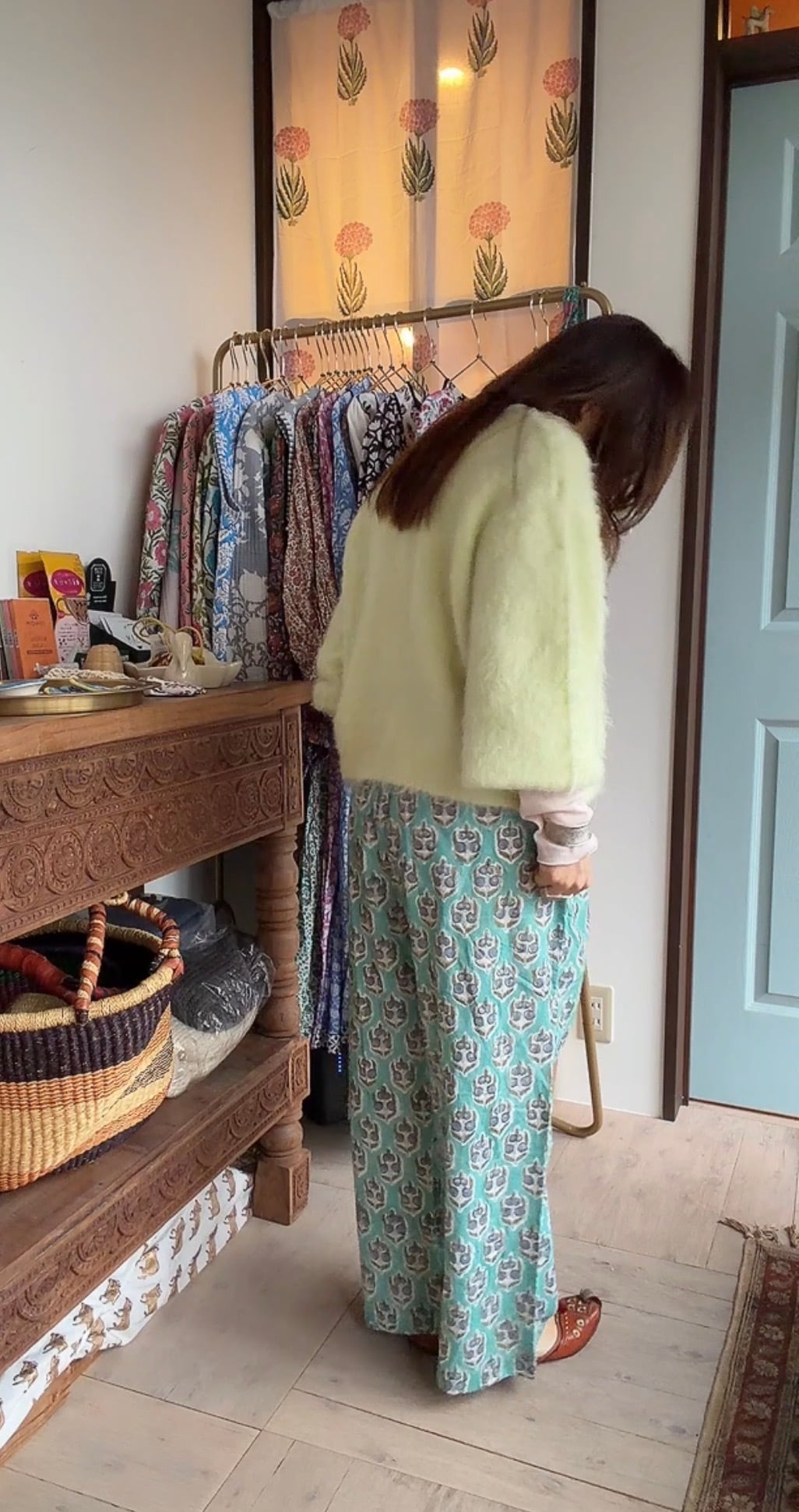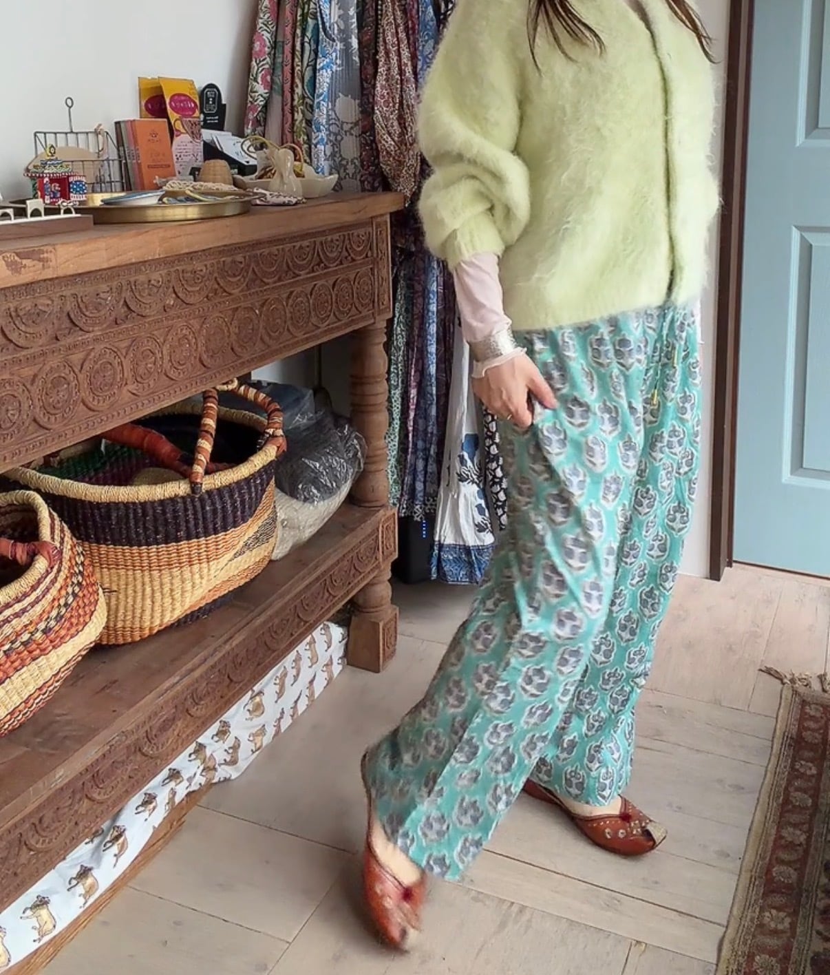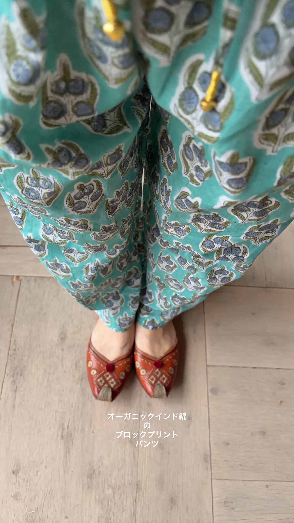 オーガニックインドコットン ブロックプリント ゆるりパンツ グリーン