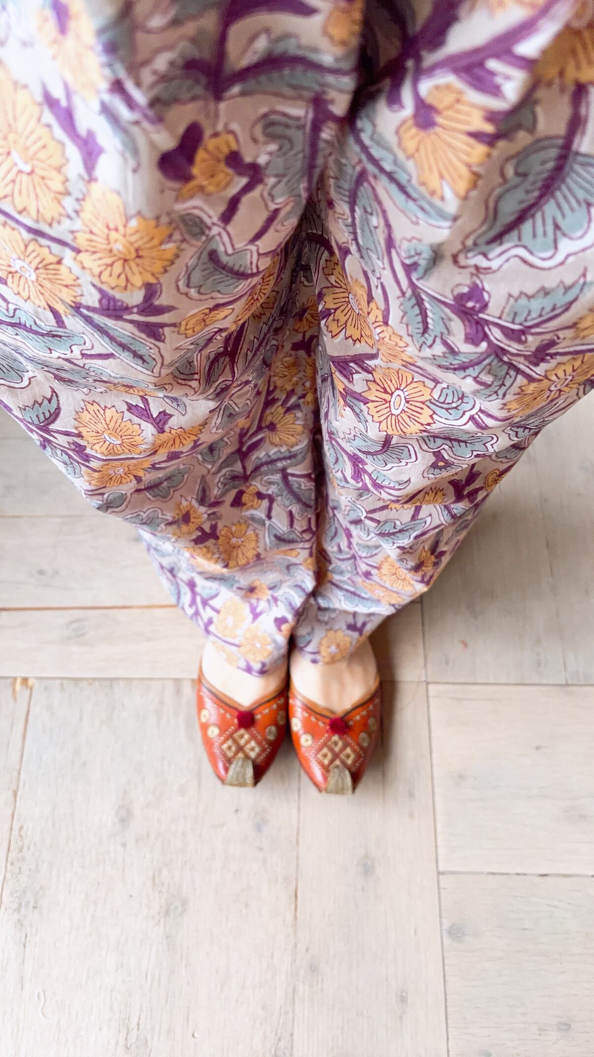 オーガニックインドコットン ブロックプリント ゆるりパンツ ベージュ