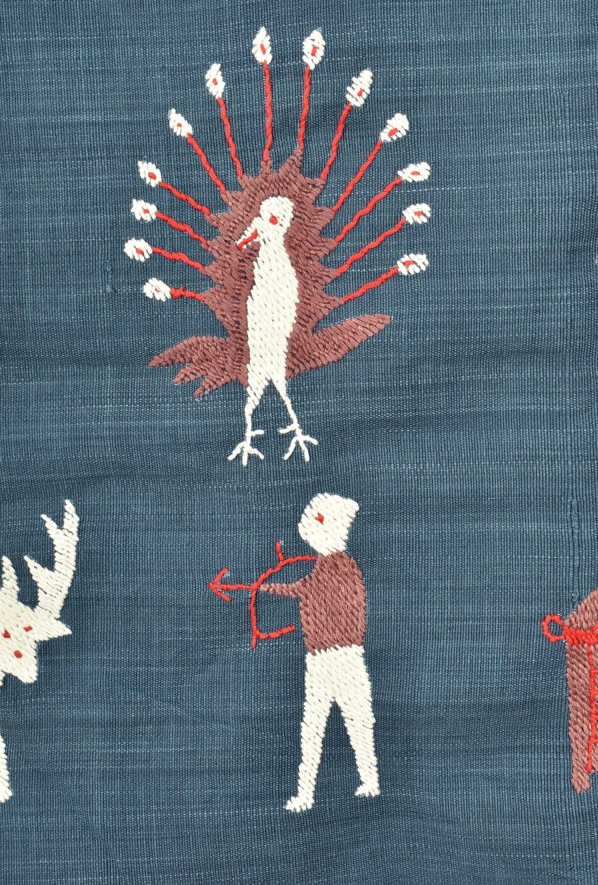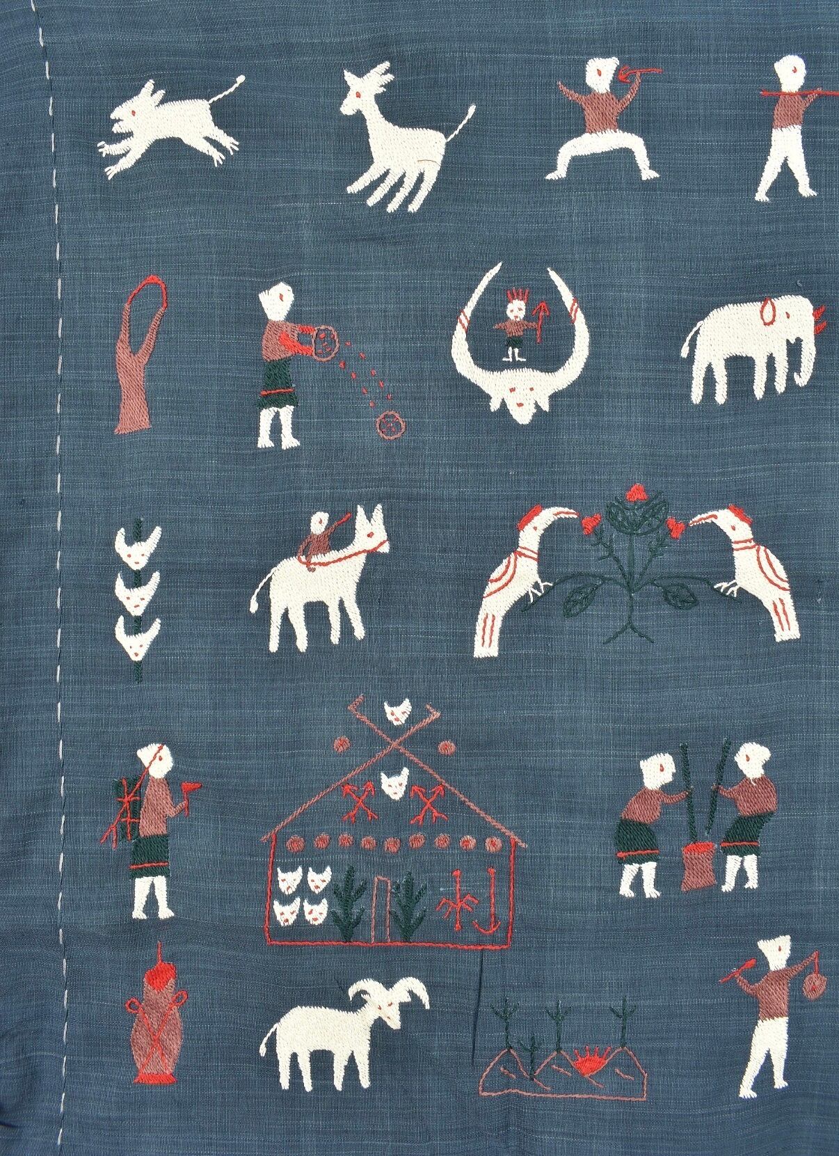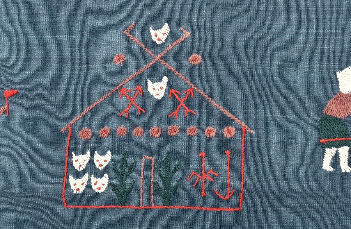 素朴なタッチの手刺繍で