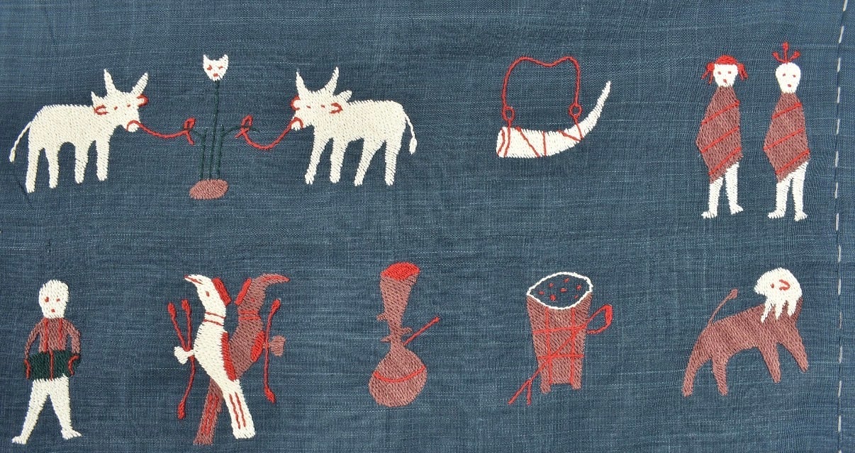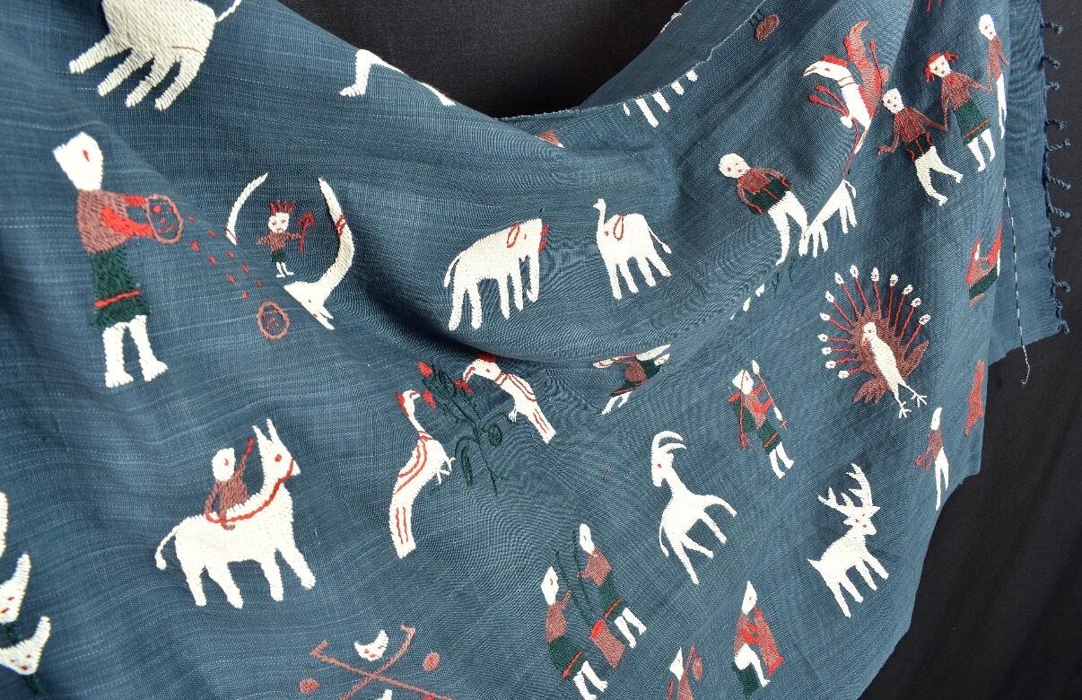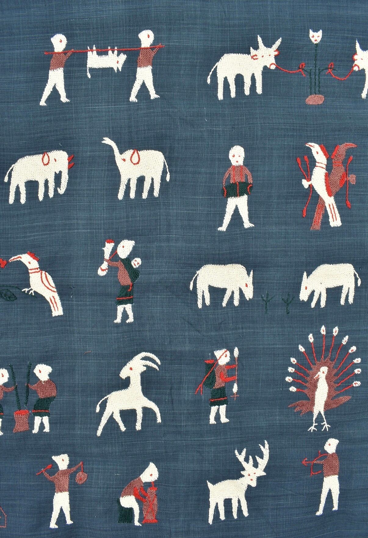 素朴なタッチの手刺繍で
