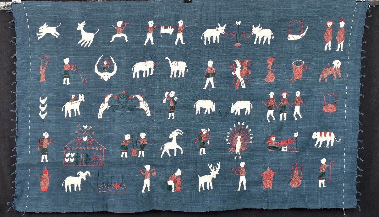【ナガ族の布】グレー