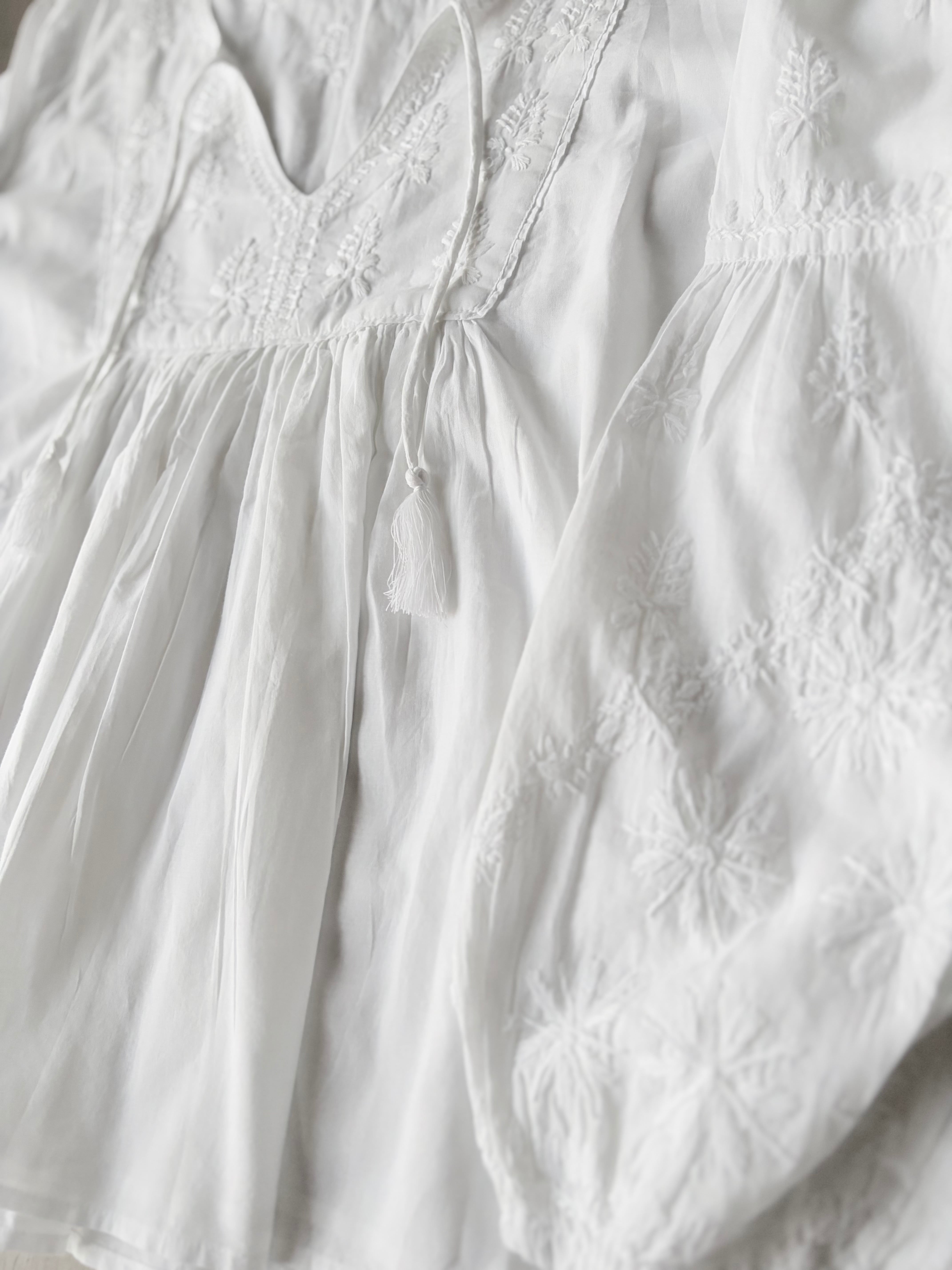 インド手刺繍 オーガニックコットンブラウス mori -森