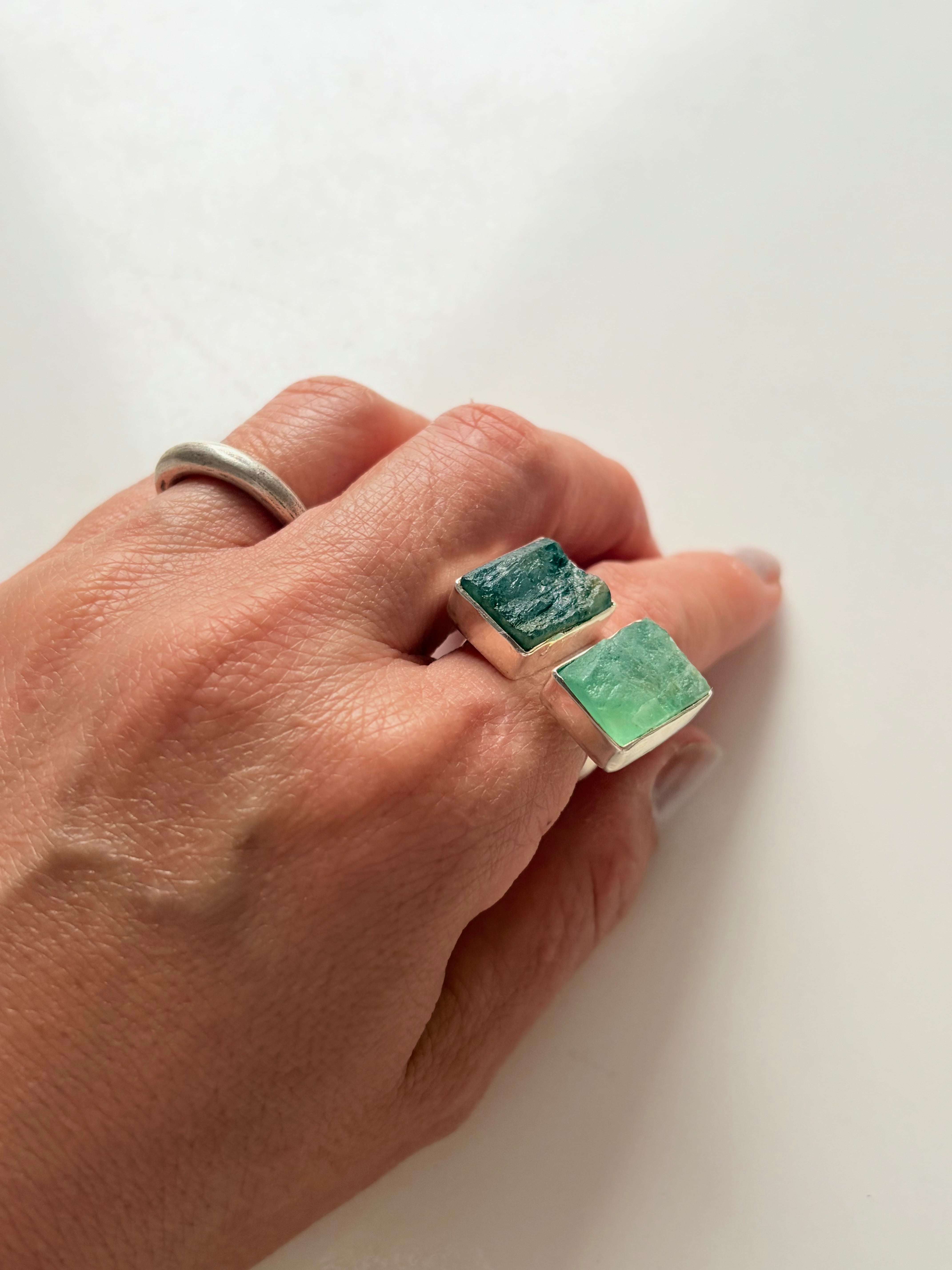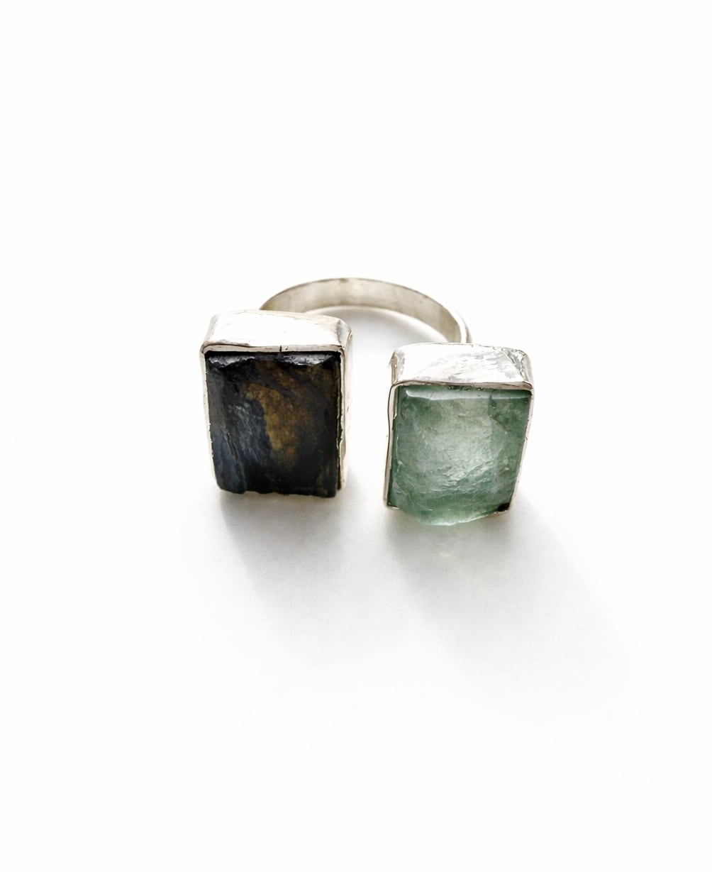 ラブラドライト×グリーンフローライト 調節可能リング|心を整える天然石ジュエリー
