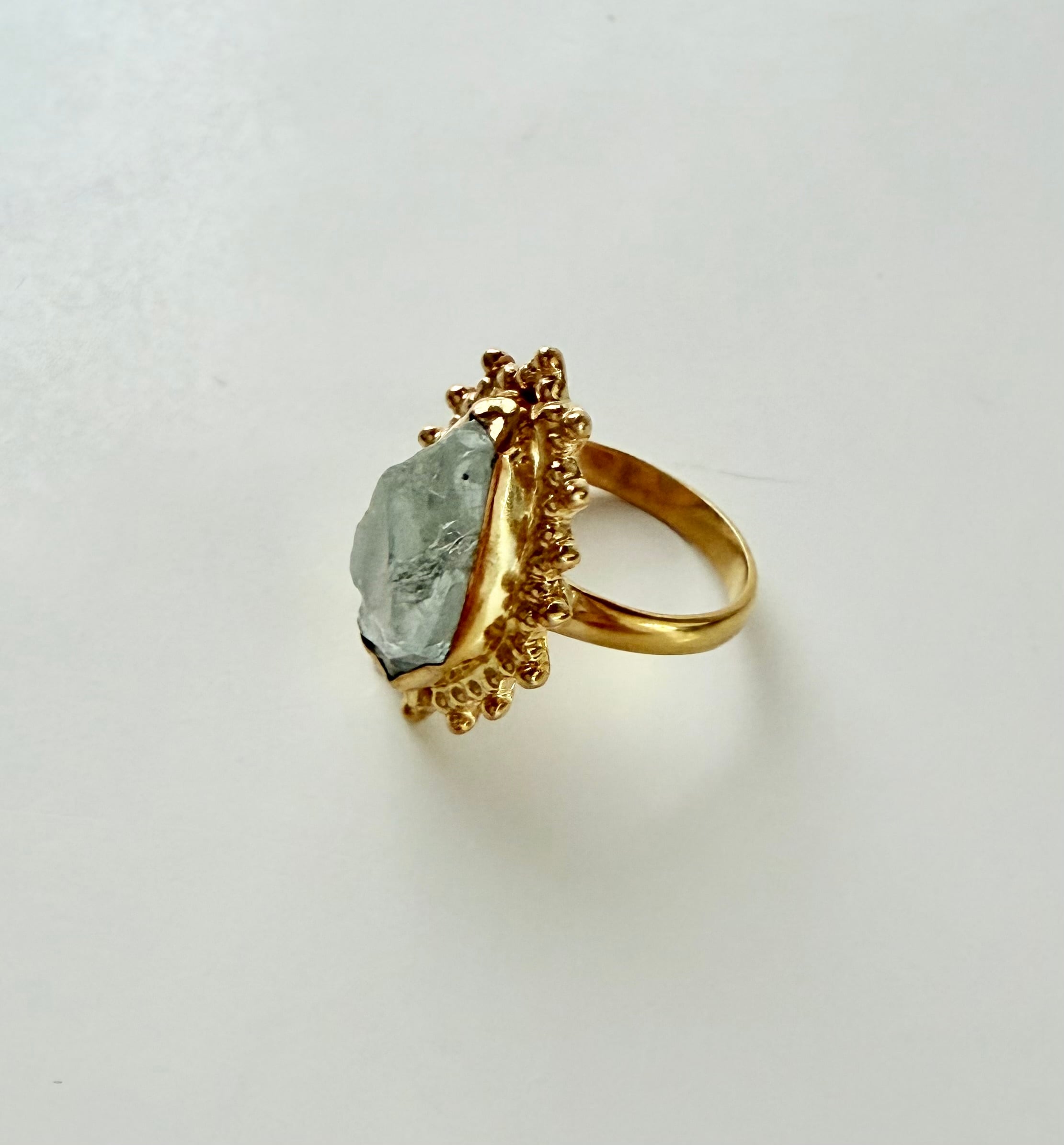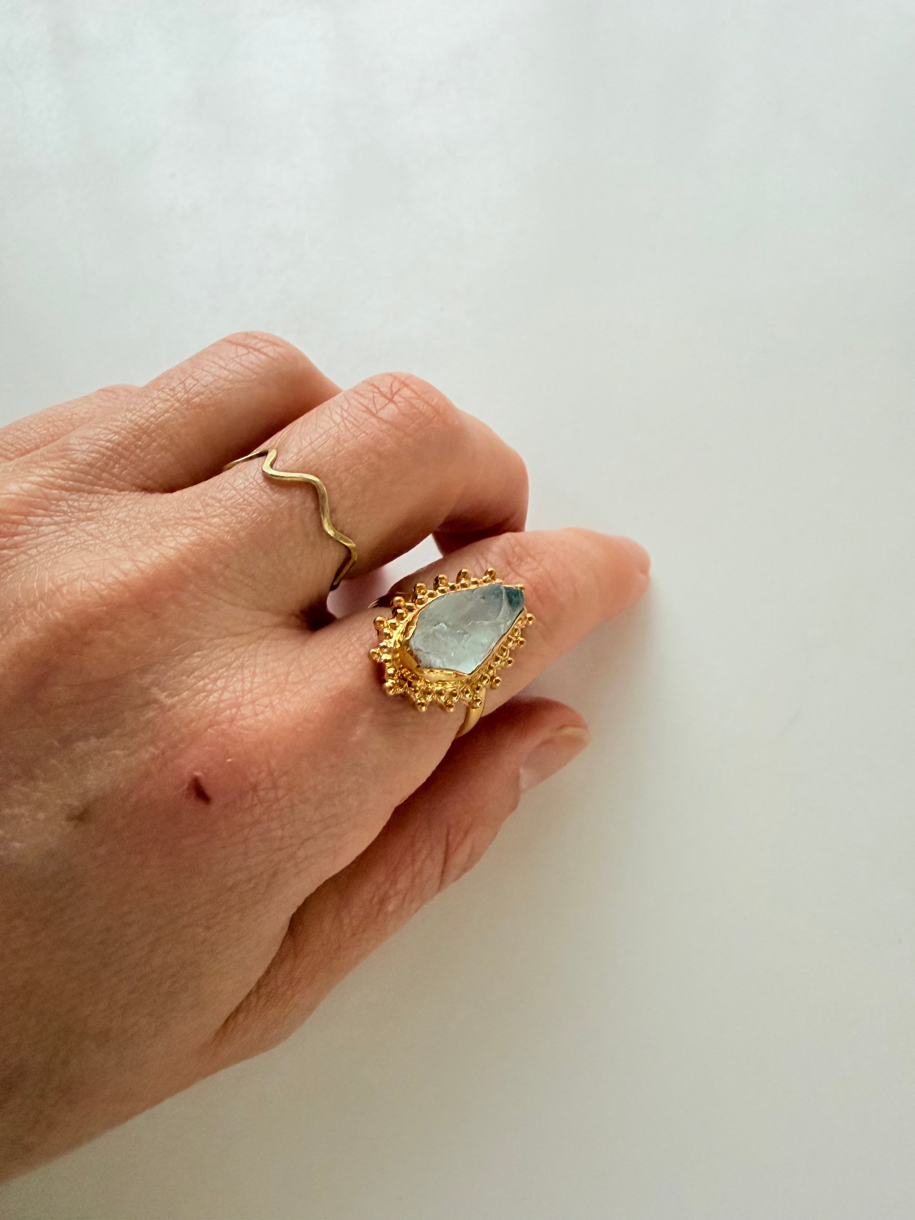 アマゾナイト、グリーンオニキス、フローライトを組み合わせた、やわらかな色合いの天然石リングです。